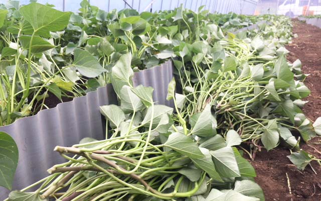 種いもとなるさつまいも(苗床)から苗をビニールハウスで育て、畑に植える大きさになったら苗切りをして畑に植える作業へとなります。